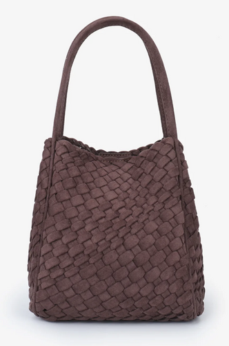 Hollace Vegan Woven Suede Mini Tote in Choclate