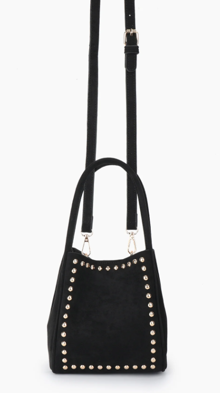 Hollace Studded Vegan Suede Mini Tote in Black