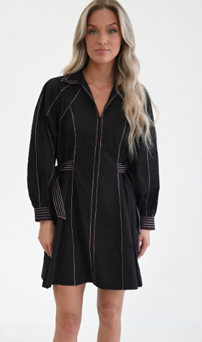 Evelyn Shirt Dress in Navy/White Rodeo Stitch