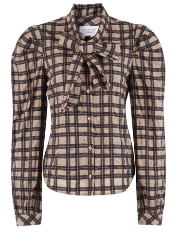 French Bow Shirt in Tan/Black Plaid