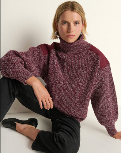 Pepper Patched Sweater in Heather Port