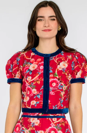 Ej261257 Coco Cropped Top in Chinoiserie Scarlet