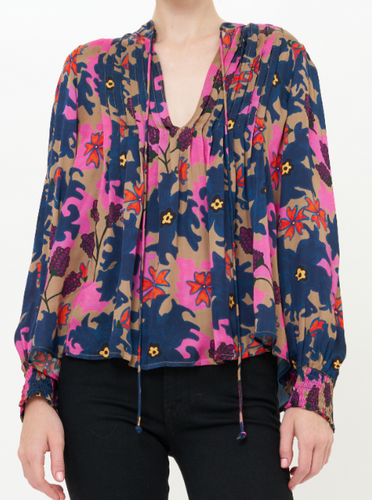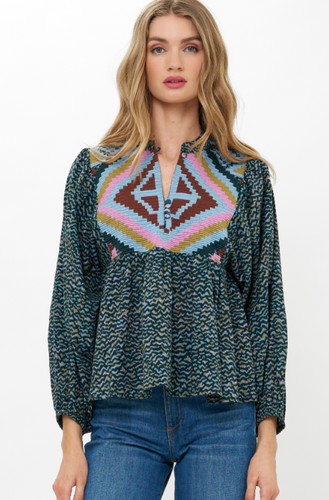 O3025n5 Mandarin Balloon Sleeve Top in Jag