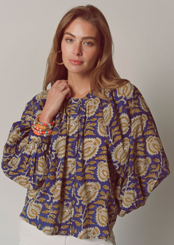 Printed LS Top in Navy