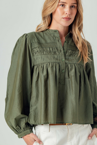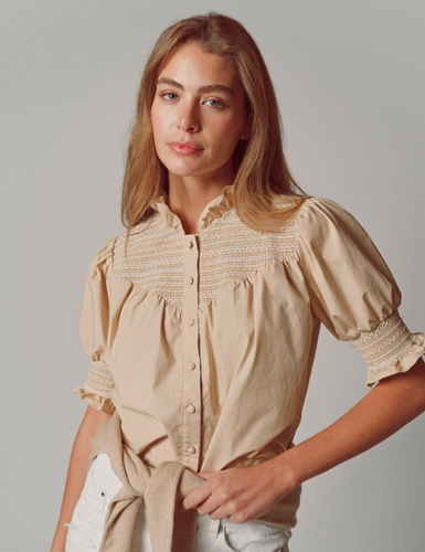 Smocked Nicole Shirt in Tan