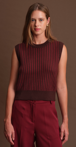 Bruce Striped Knit Vest in Cacao/ Malbec